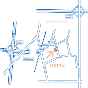 Biegen Sie dann rechts auf die Emscherallee, Richtung Nette und folgen Sie der Straße bis zur Abbiegung Mengeder Straße. Fahren Sie hier rechts und folgen der Straße bis zur Donnstraße. Hier biegen Sie links ab und fahren dann bei der zweiten Möglichkeit rechts in die Wodanstraße.
